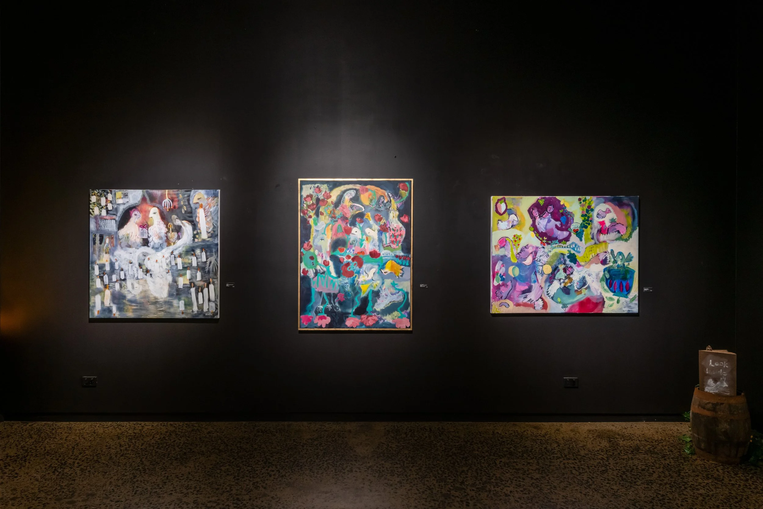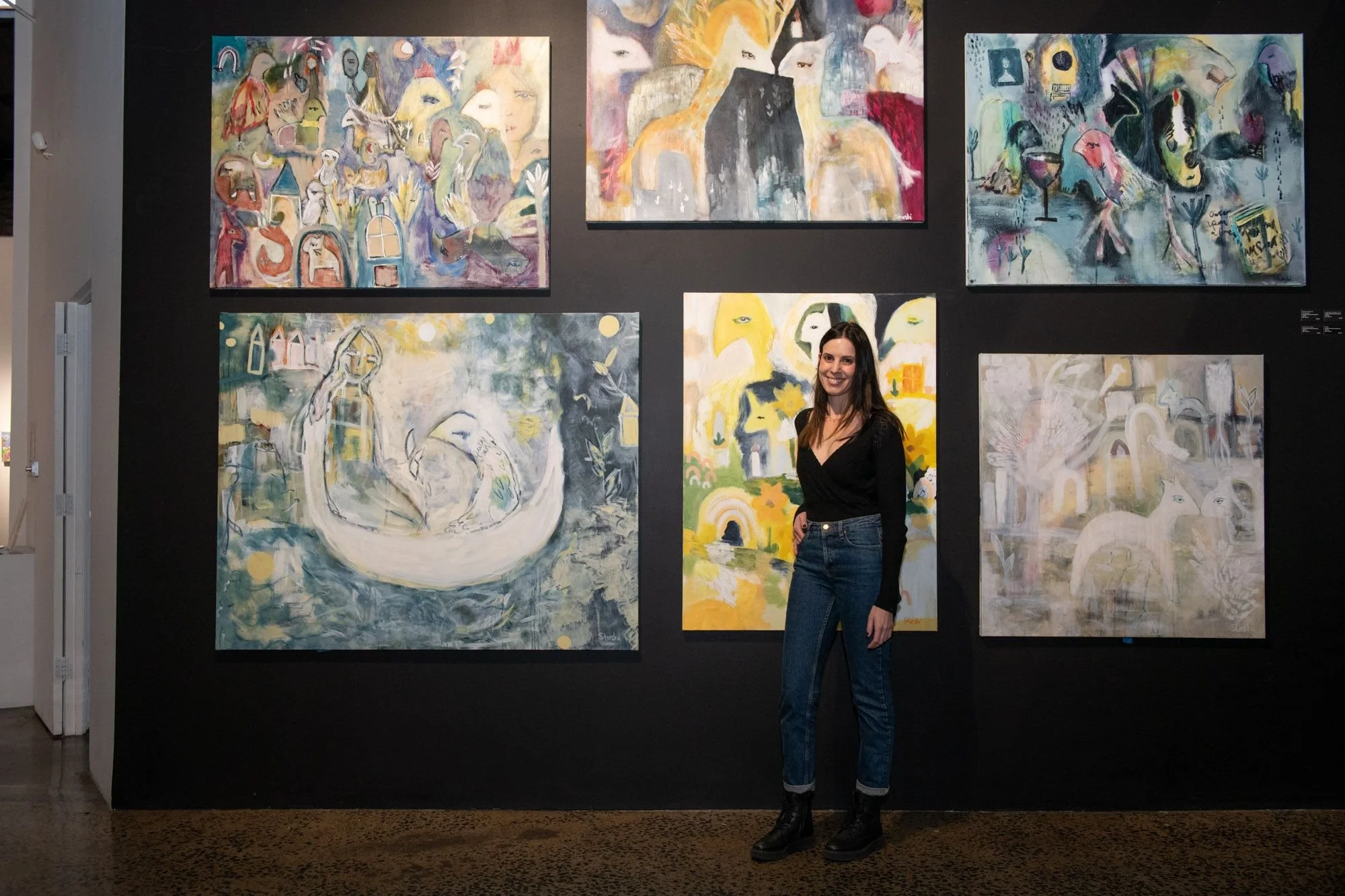 My works are the place where memories and dreams meet. Bird like creatures and other whimsical images emerge intuitively onto the canvas. Current works embody universal themes of love and loss, vulnerability and strength. Colour, symbol and metaphor are woven together creating magical worlds of renewed possibility.'