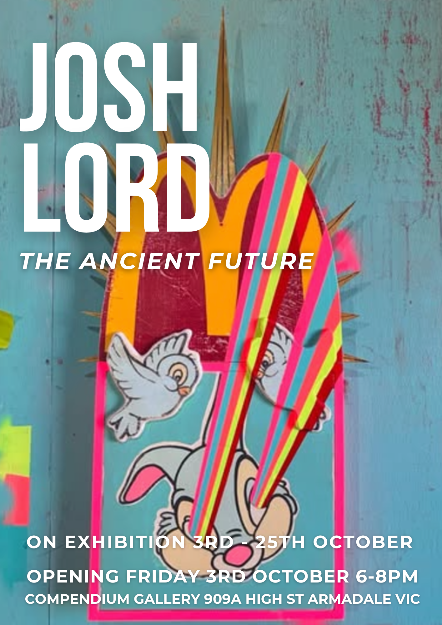 Josh Lord’s work drifts between neon-lit futures and the ruins of forgotten empires. Inspired by cyberpunk visions and the fragility of ancient civilizations, his practice explores the tension of “high tech, low life.” In these layered worlds, technology glows with promise even as it foreshadows collapse. Familiar icons—Coca-Cola signs, fragments of mass culture—are recast as relics, stripped of meaning and reborn as ritual objects. Lord invites us to see our own time as both luminous and fragile, already slipping into history.